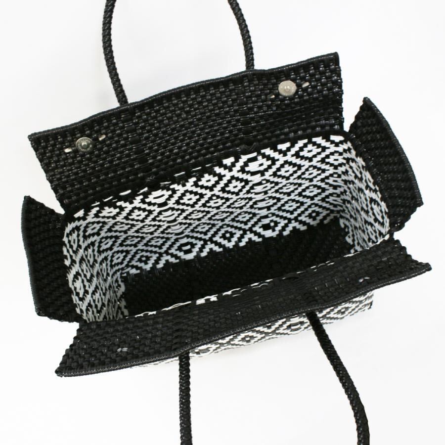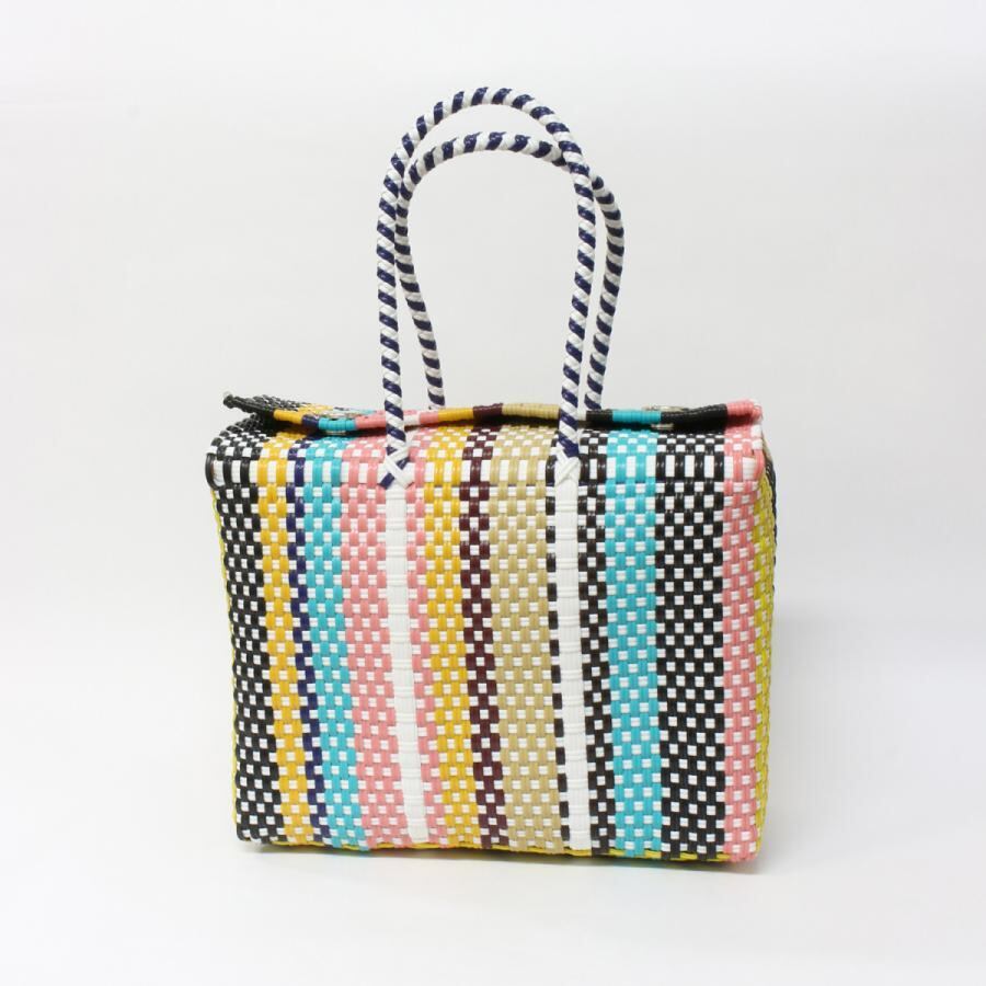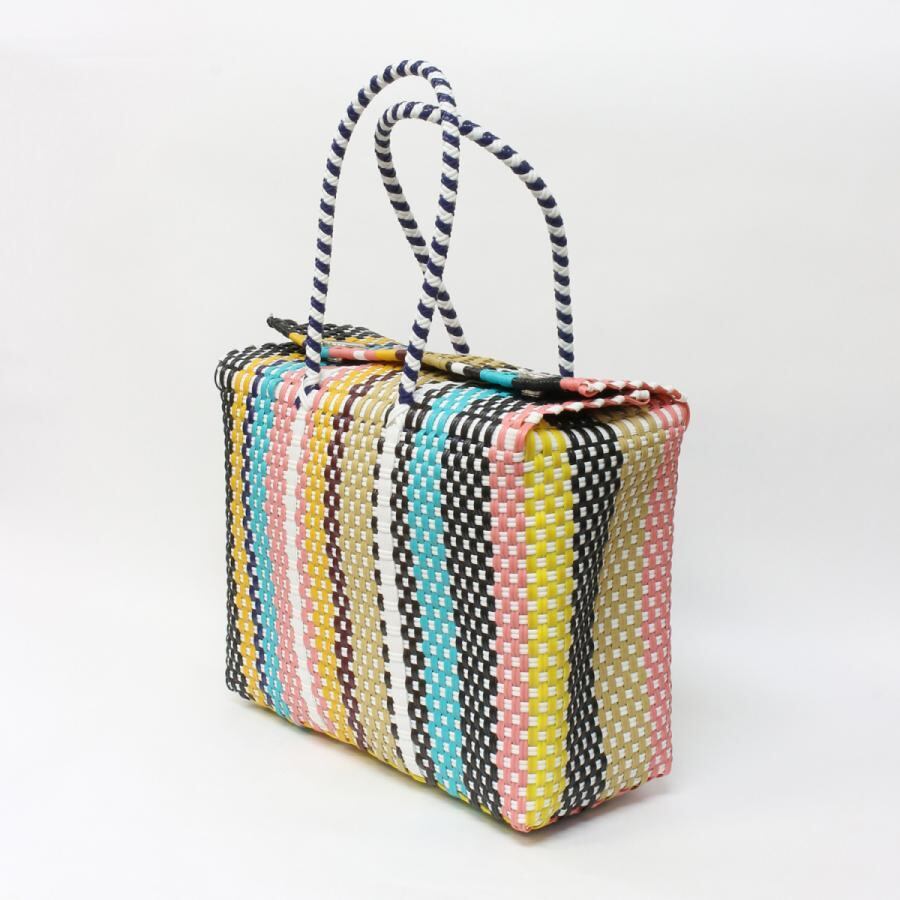 人気のメルカドバッグが登場です。メキシコの職人がひとつひとつ丁寧に手編み。柔軟性のある塩化ビニール製。汚れてもサッと拭き取ればキレイになります。伸びやかな素材は耐久性にも優れているので長く楽しめます。サイズは30cm×22cm×15cmです。1点もののカラーは個性抜群。大いに悩んでお買い上げください!